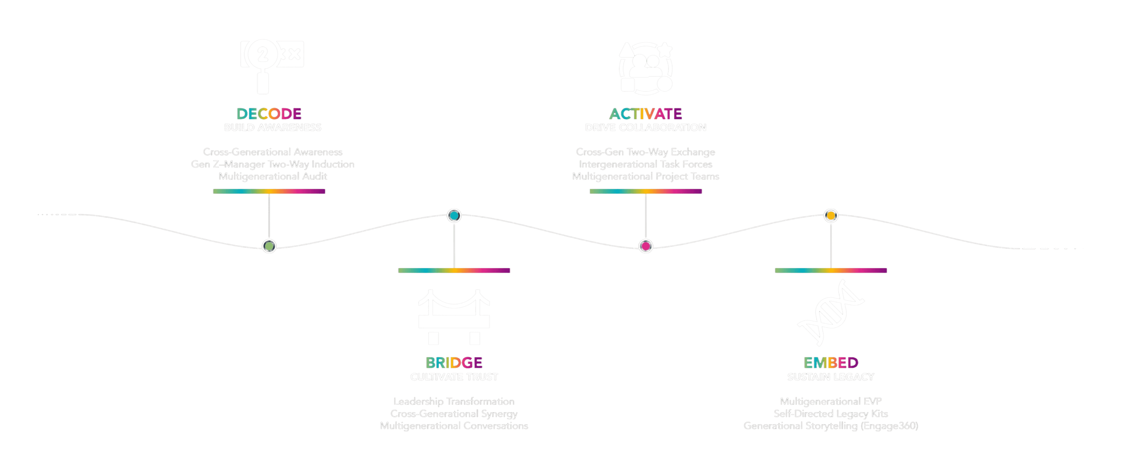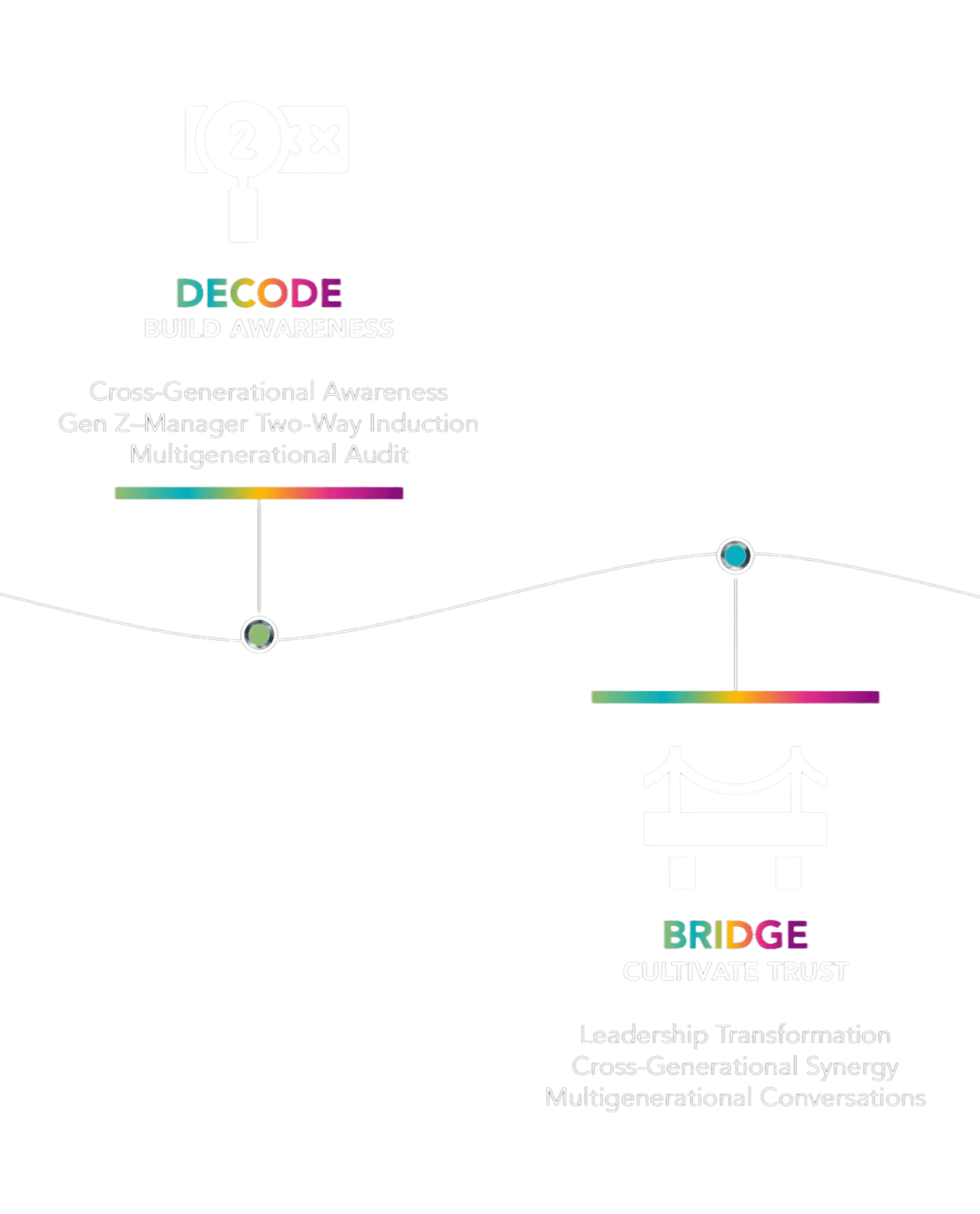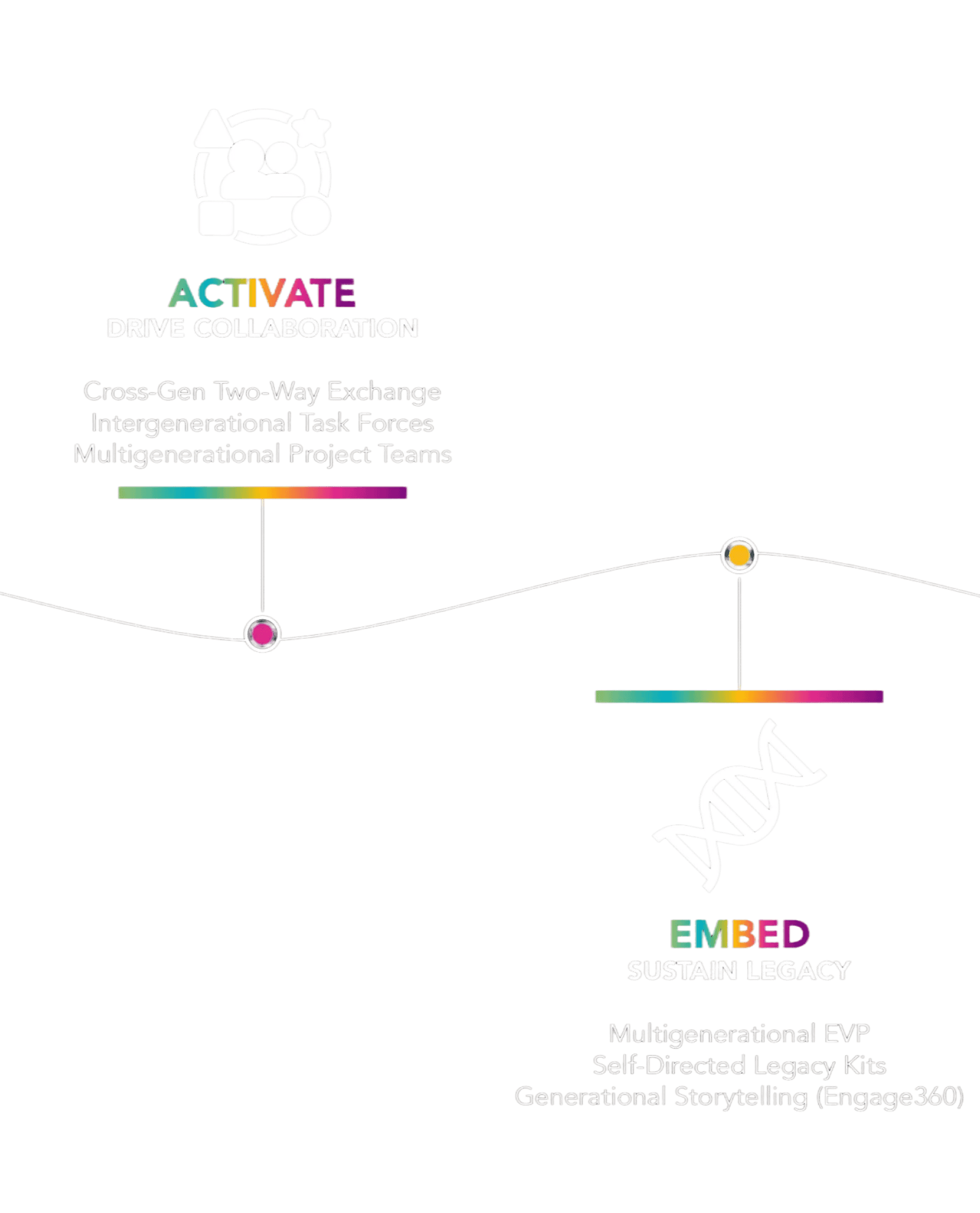 A suite of workshops, advisory initiatives, leadership experiences, and long-term solutions designed around the Generational Wayfinder.